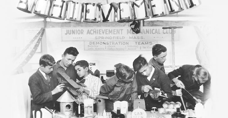 Em 1919, o Boys’ and Girls’ Bureau da Eastern States League é oficialmente lançado em Springfield, Massachusetts, EUA. O objetivo é educar crianças de 8 a 12 anos sobre o mundo dos negócios por meio de clubes depois da escola. Em 1920, o nome da organização muda oficialmente para Junior Achievement (JA)®.