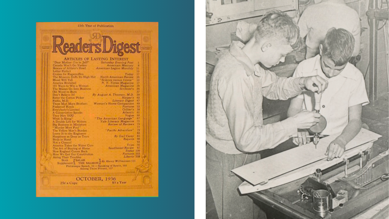 Em 1936, um artigo sobre a JA (“Grandes negócios em miniatura”) foi publicado na Reader’s Digest, a revista de interesse geral de maior circulação nos EUA, gerando grande procura pelo programa de empreendedorismo da JA — Miniempresa® — que oferece a estudantes do ensino médio a oportunidade de vivenciar na prática a criação e gestão de uma empresa. Durante o programa, os jovens formam e lideram equipes, definem produtos, produzem, vendem, administram recursos e competem com outras escolas e países.